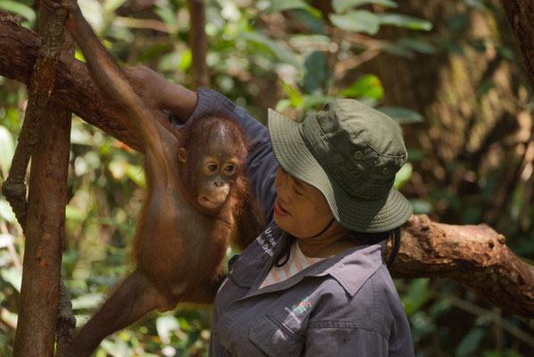 Sie sind sanft und vorsichtig, intelligent und erfindungsreich. Sie haben die gleichen Blutgruppen wie wir Menschen und ihre Fingerabdrücke sind so einzigartig wie die unseren. Es kommt also nicht von ungefähr, dass das Wort Orang-Utan übersetzt „Waldmensch“ bedeutet. In Borneos Regenwald geboren, lernt ein Orang-Utan-Baby von seiner Mutter alles, was es wissen muss, um im Dschungel zu überleben. Aber der Lebensraum der Menschenaffen schwindet. Bejagung und Wildtierhandel bringen zusätzlich Tod und Leid . Nur mit viel Glück im Unglück gelangen die kleinsten und hilflosesten Opfer in die Fürsorge einer Auffangstation wie die der Borneo Orangutan Survival Foundation in Nyaru Menteng. Hier wird den Orang-Utan-Waisenkindern Fürsorge und Aufmerksamkeit zuteil. Im zugehörigen Kindergarten und in der Waldschule bereiten hingebungsvolle Pflegemütter sie darauf vor, eines Tages wieder in die Wildnis zurückzukehren.
